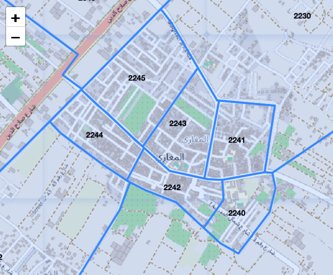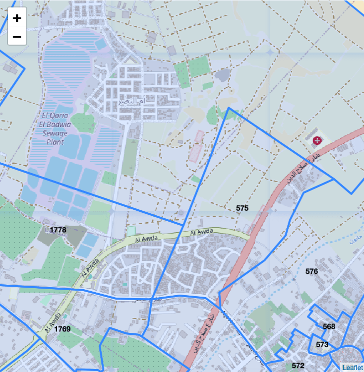 So the first thing I checked was the source of the background data, and the second was for the possible reasoning behind the evacuation areas, how they might have been determined. The first notable thing here is that the areas themselves don’t directly conform to municipal or other more traditonal boundaries. They do sort of end up coinciding with major cities, which I’ll explain in a minute. But first it is notable that there’s little to no overlap with historic boundaries. In Palestinian-controlled areas there’s often a relatively high degree of dependency on pre-existing boundaries, especially British colonial boundaries. This is partly because Palestinian cartographers aren’t routinely given the opportunity or freedom of movement to construct and implement new boundaries and data. There are NGOs and some organizations affiliated with bodies like the United Nations and/or Palestinian Authority who have mapped and implemented updated boundaries and geographic features successfully, but it’s not easy and requires funding, time, significant labor capacity, and innovation on the part of the Palestinian technicians and cartographers.